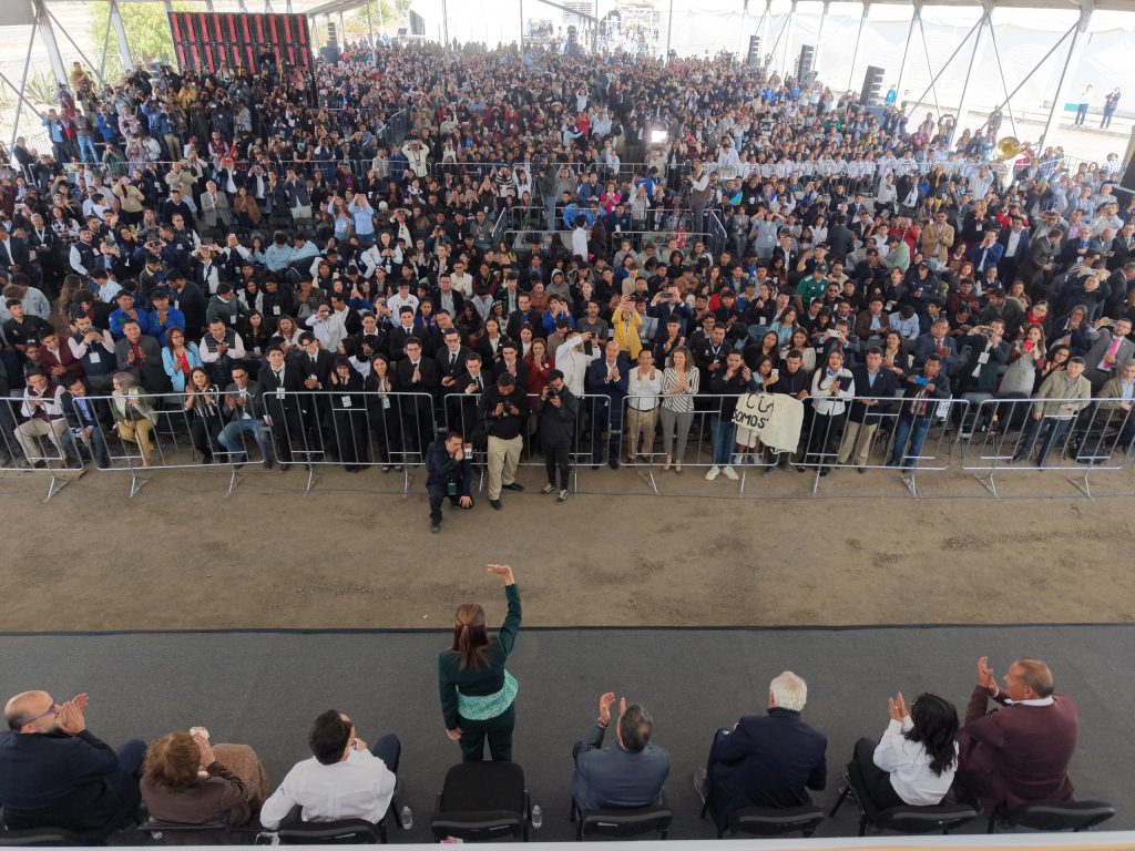 Ante estudiantes del TecNM, destacó que una parte esencial de su gobierno es garantizar la educación como un derecho, por ello, se abrirán más espacios en Educación Media Superior y Superior con la construcción de más planteles.