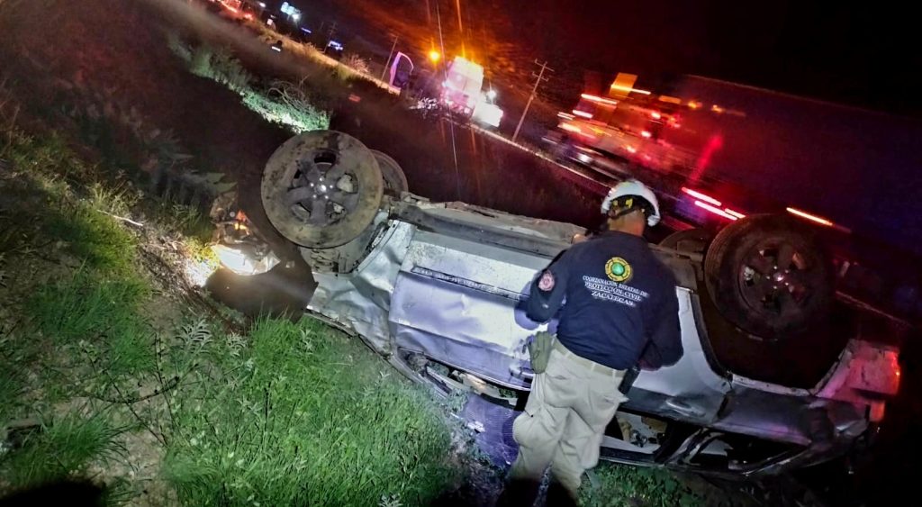 Zacatecas, Zac. — La Coordinación Estatal de Protección Civil (CEPC), bajo la dirección de Jorge Gallardo Álvarez, atendió la noche de esre domingo un trágico accidente carretero tipo volcadura sobre la carretera federal 45, a la altura de la comunidad Santa Mónica, en dirección Trancoso-Zacatecas.