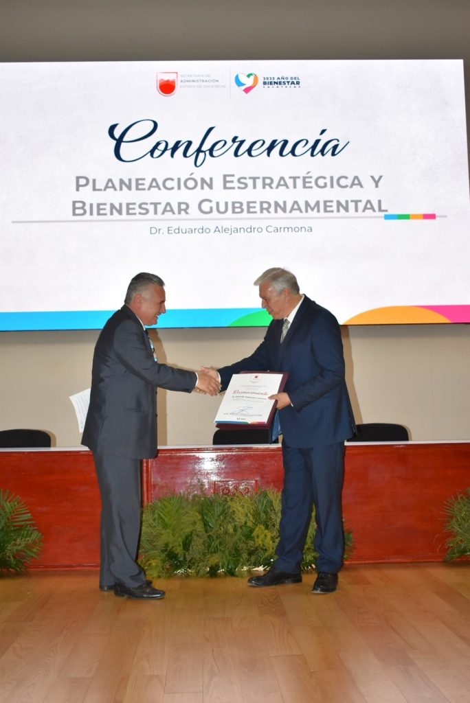 Zacatecas, Zac.- Como parte de las acciones enmarcadas en la Agenda del Bienestar, impulsada por el Gobernador David Monreal Ávila, la administración estatal ofreció a las y los servidores públicos del Gobierno de Zacatecas la conferencia denominada Planeación “Estratégica y Bienestar Gubernamental”, impartida por Eduardo Alejandro Carmona, de la Universidad Autónoma de Zacatecas.
