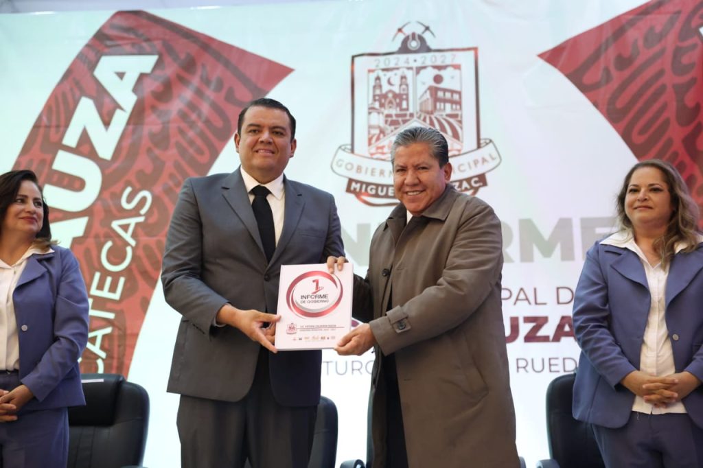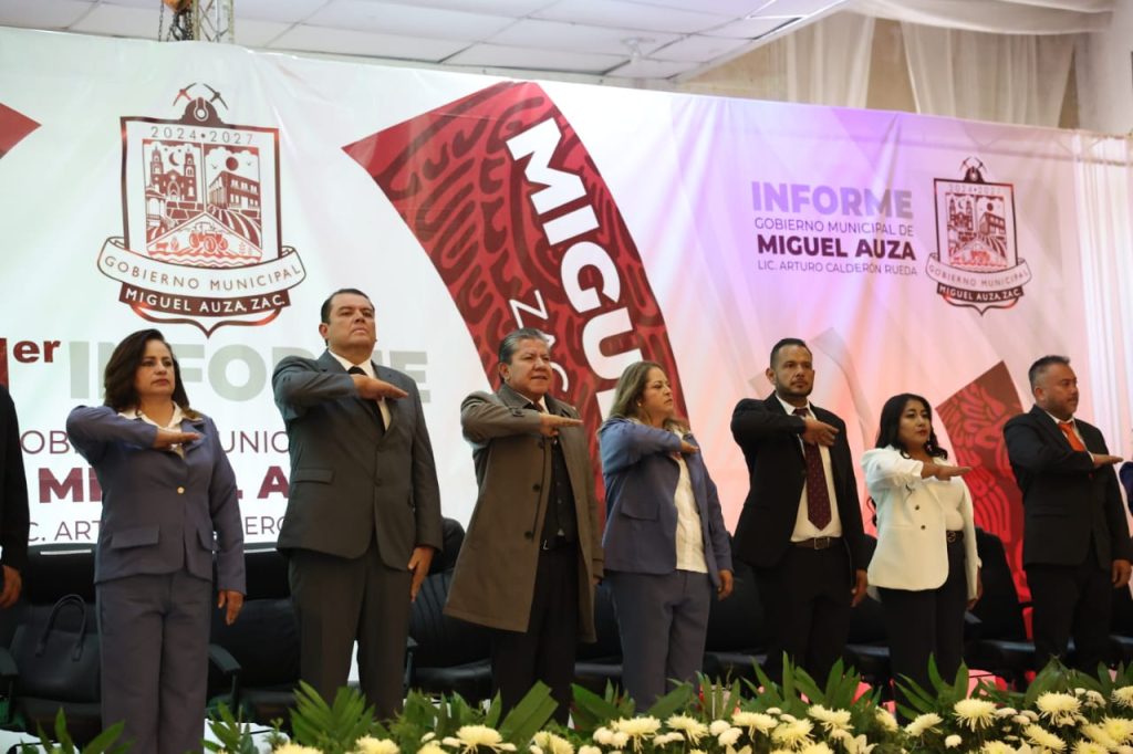 Miguel Auza, Zac.- Al asistir como invitado especial a la ceremonia del Primer Informe de Gobierno del Presidente Municipal de Miguel Auza, Arturo Calderón Rueda, el Gobernador David Monreal Ávila ofreció total respaldo institucional, social y financiero para acelerar la transformación y el desarrollo de este territorio.