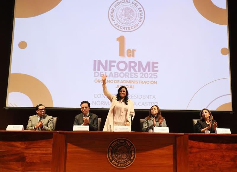Zacatecas, Zac. – Tras referir que la reforma judicial llegó para transformar a esta noble institución en una institución democrática, cercana a la gente, sensible a las necesidades de la población hacia una sociedad en paz y de progreso; se rindió el Primer Informe de Anual de Labores 2025 del Pleno del Órgano de Administración Judicial del Poder Judicial del Estado por conducto de la Presidenta del Consejo Norma Esparza Castro.