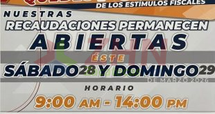 Último fin de semana con estímulos fiscales; abrirán oficinas de Recaudación de Rentas este 28 y 29 de marzo