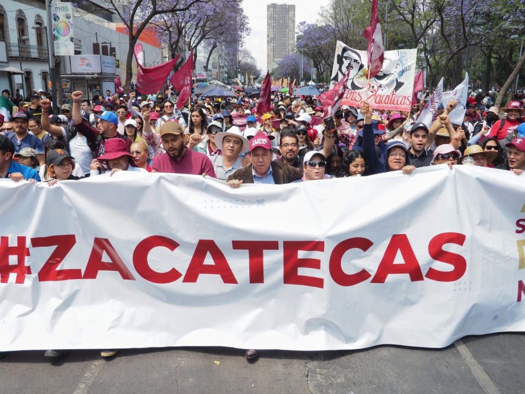 El Gobernador zacatecano encabezó el contingente de miles de paisanos que recorrió las principales avenidas de la capital del país, acompañado por la Marcha Zacatecas que, a su llegada a la principal plaza pública y corazón de México, la hizo retumbar con sus notas.