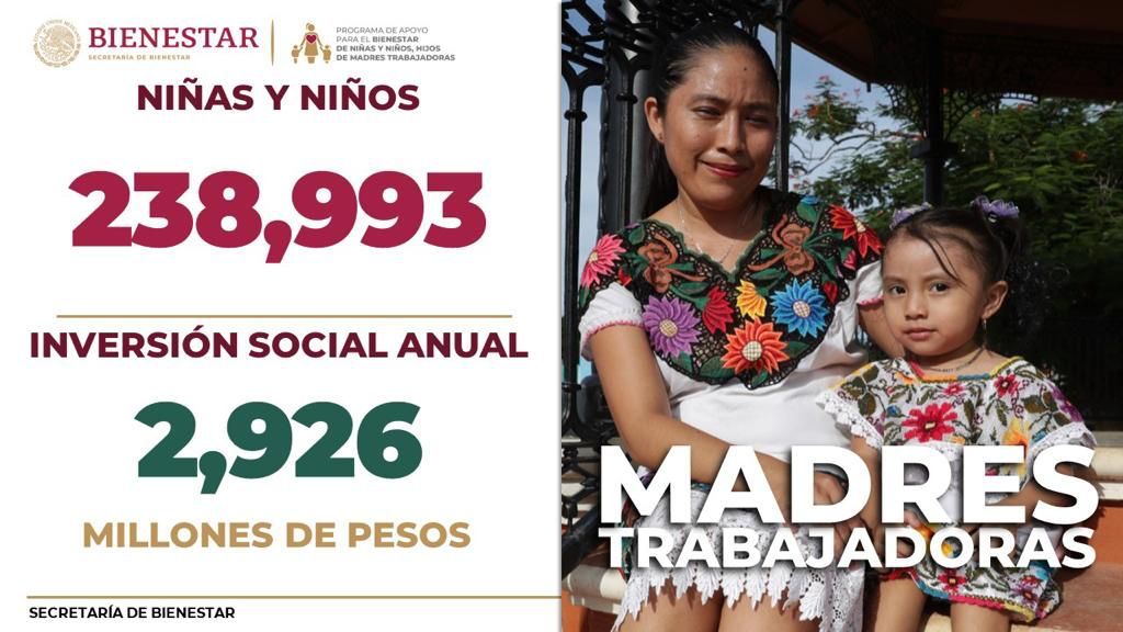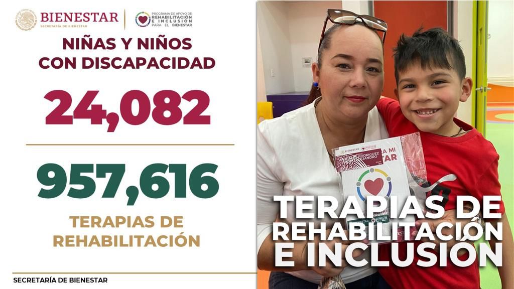 Montiel Reyes abundó que son 238 mil 993 beneficiarios del Programa de Apoyo para el Bienestar de las Niñas y Niños, Hijos de Madres Trabajadoras, y la inversión social anual es de dos mil 926 millones de pesos. El monto individual es de mil 600 pesos bimestrales. Asimismo, 24 mil 082 niñas y niños han recibido 957 mil 616 terapias del Programa de Apoyo de Rehabilitación e Inclusión para el Bienestar de Niñas y Niños con Discapacidad.