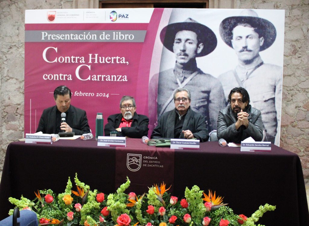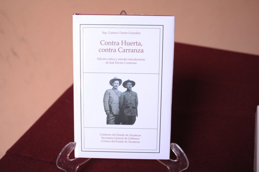 Zacatecas, Zac.- Esta mañana fue presentado el libro Contra Huerta, contra Carranza, autoría de Gustavo Durón González, con una edición crítica y estudio introductorio de José Enciso Contreras, en el cual se narra, en primera persona, diversos pasajes históricos vividos por el autor durante la Revolución Mexicana, desde la época maderista, hasta el carrancismo.