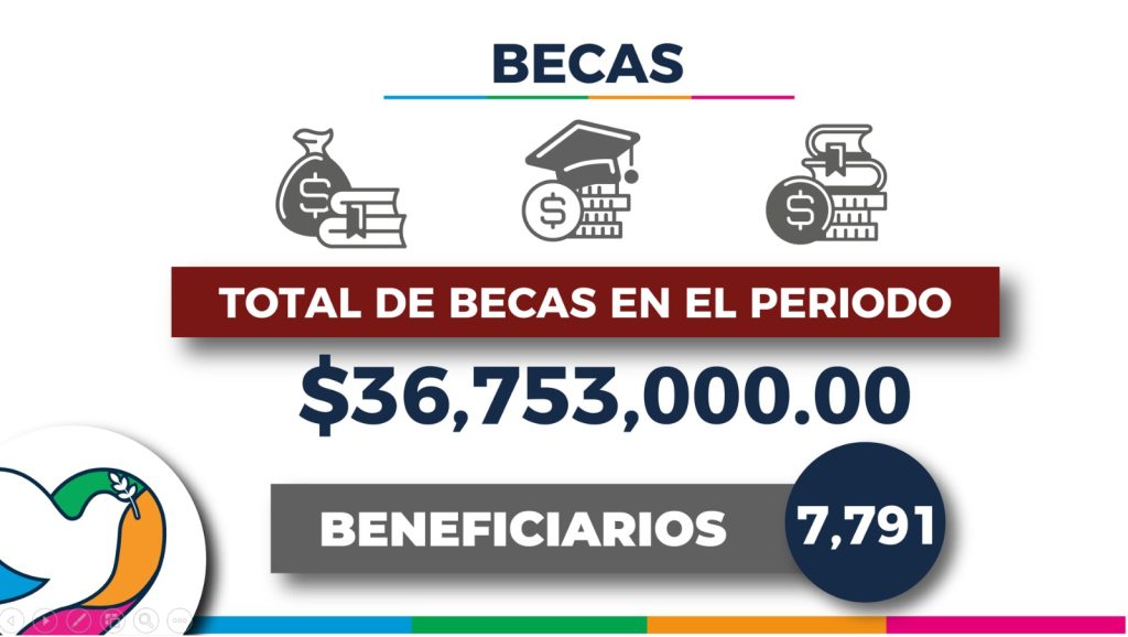 En el periodo que se informa, el Gobierno de Zacatecas destinó un total de 36 millones 753 mil pesos, en beneficio de 7 mil 791 familias en toda la entidad; este recurso se destinó para alumnas y alumnos desde primaria hasta universidad.