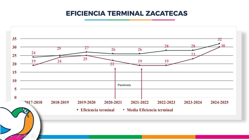 Dicha cifra es un logro destacado que posiciona a Zacatecas a 2 puntos porcentuales de la media nacional, que en el ciclo escolar 2024-2025 se estableció en 32 puntos.
