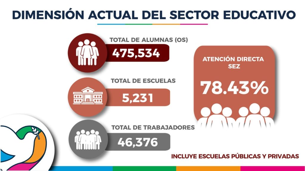 Pinedo Morales mencionó que, en materia de apoyos educativos, la dependencia a su cargo entregó 264 mil 724 mochilas a un mismo número de estudiantes de educación básica, que comprende la totalidad de alumna y alumnos de escuelas públicas de primaria y secundaria.