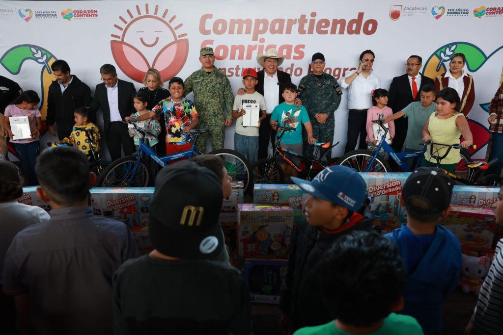 “El progreso no se logra sin paz, y la paz sólo se construye si apostamos desde ahora por nuestra infancia, por eso hemos venido a compartir sonrisas, pero también a construir futuro”, afirmó el Gobernador David Monreal Ávila.