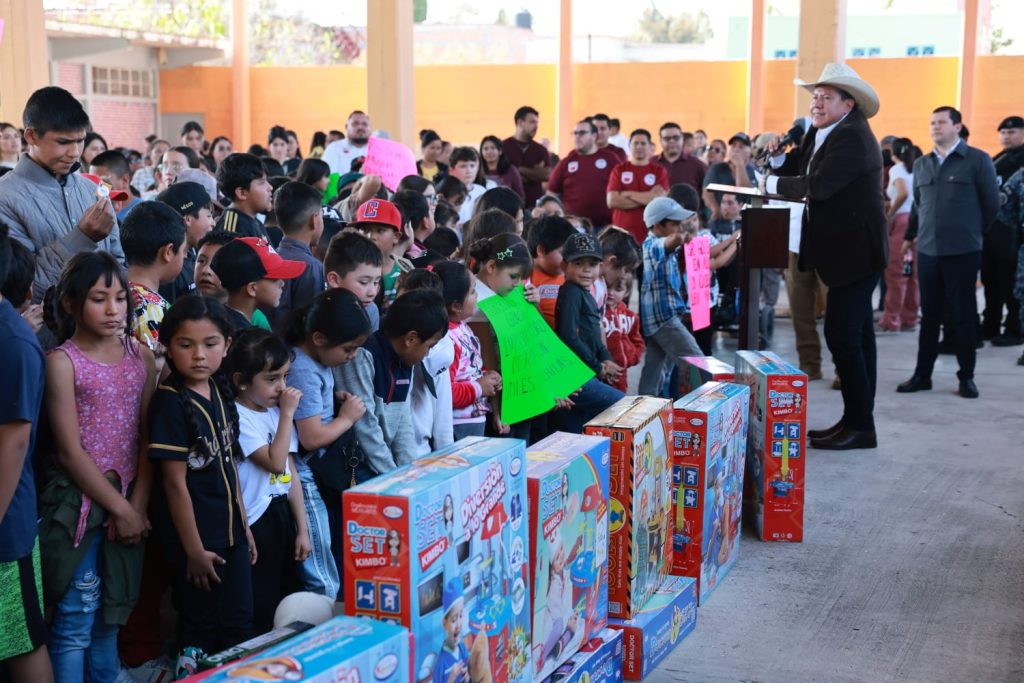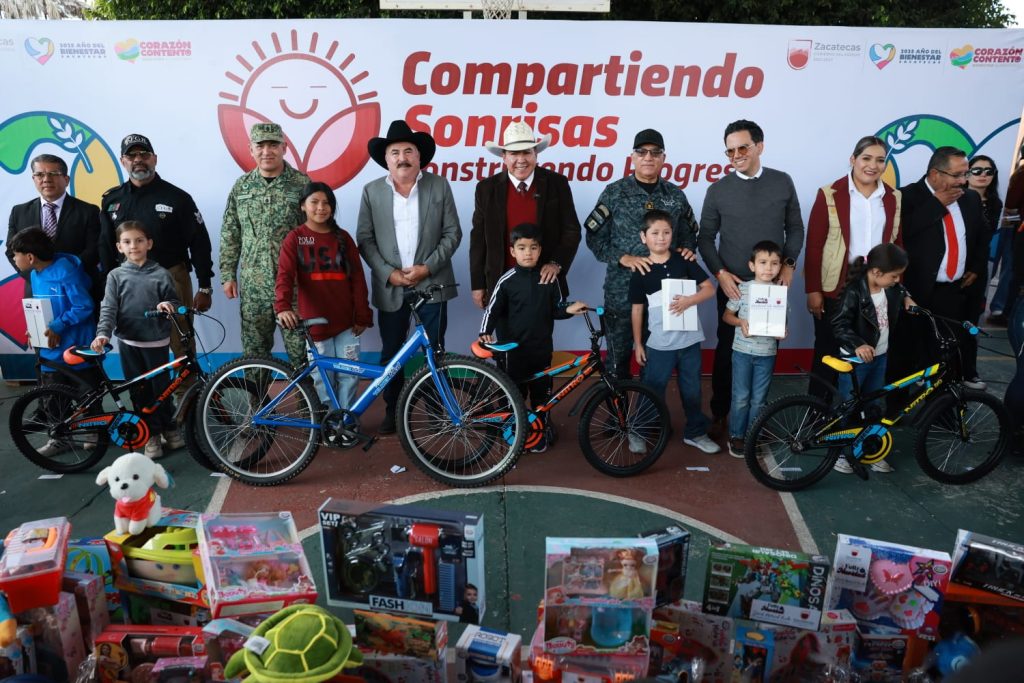Nochistlán de Mejía, Zac.- Con el compromiso de construir un estado más pacífico desde las bases de la educación y la convivencia infantil, el Gobernador David Monreal Ávila encabezó el arranque del programa “Compartiendo Sonrisas, Construyendo Progreso”, una estrategia impulsada a través de la Mesa de Construcción de Paz en Zacatecas, que promueve valores, unión y cultura de paz mediante la entrega de juguetes no bélicos a niñas y niños del estado.