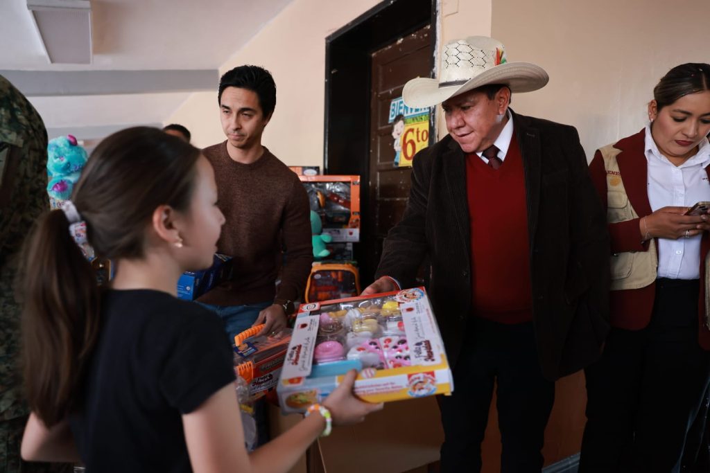 Desde las escuelas primarias “Leobardo Reynoso” en Nochistlán, y “Pino Suárez” en Apulco, el mandatario estatal reafirmó que esta campaña es un esfuerzo institucional que involucra a corporaciones de seguridad como el Ejército Mexicano, la Guardia Nacional y la Policía Estatal, quienes participan activamente en la distribución de juguetes.