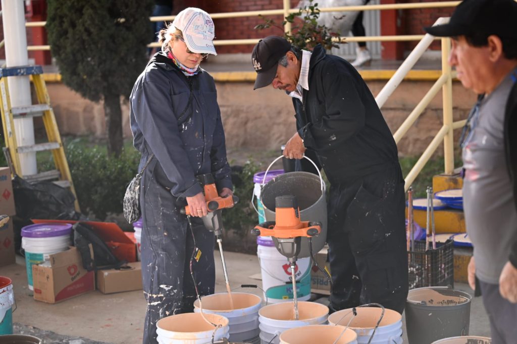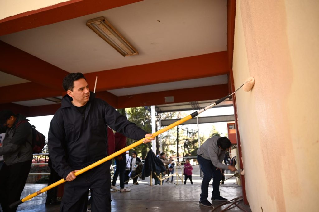 Entre las acciones emprendidas este día destaca la rehabilitación de pintura interior y exterior de aulas, cancelaría, pintura de tráfico, impermeabilización, instalación de lámparas y limpieza general.