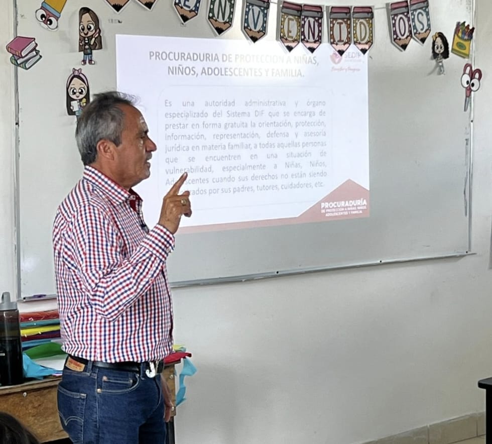 El Procurador de Niñas, Niños, Adolescentes y Familia del SEDIF, Álvaro García Hernández, destacó que, estas capacitaciones han tenido lugar en los municipios de Fresnillo, Pinos, Valparaíso, Villanueva y Monte Escobedo, y han sido impartidas por personal especializado de la Procuraduría, quienes han brindado asesoría directa, profesional y oportuna a los actores educativos comunitarios.