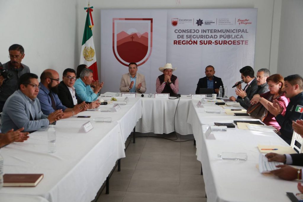 Para fortalecer la coordinación entre el Gobierno de Zacatecas, el Gobierno de México y las autoridades municipales, se han delimitado ocho regiones a lo largo y ancho del territorio estatal, para que, a través de los Consejos Intermunicipales de Seguridad Pública, se lleven a cabo acciones de seguridad de manera ordenada, se dé seguimiento a este tema y se obtengan mejores resultados.