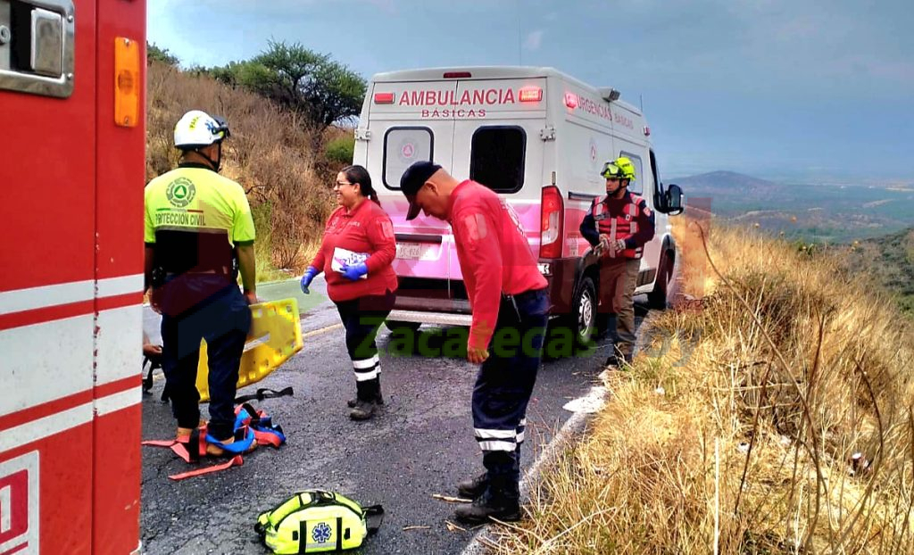 Genaro Codina. Zac.- Efectivos de la Coordinación Estatal de Protección Civil (CEPC), bajo la dirección de Jorge Gallardo Álvarez y el mando operativo del Teniente Missael Espinosa Ordaz, atendieron un accidente carretero tipo salida de camino registrado sobre la carretera estatal 181, a aproximadamente dos kilómetros adelante del entronque hacia Genaro Codina.