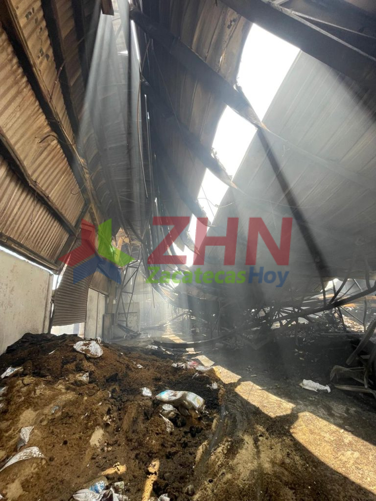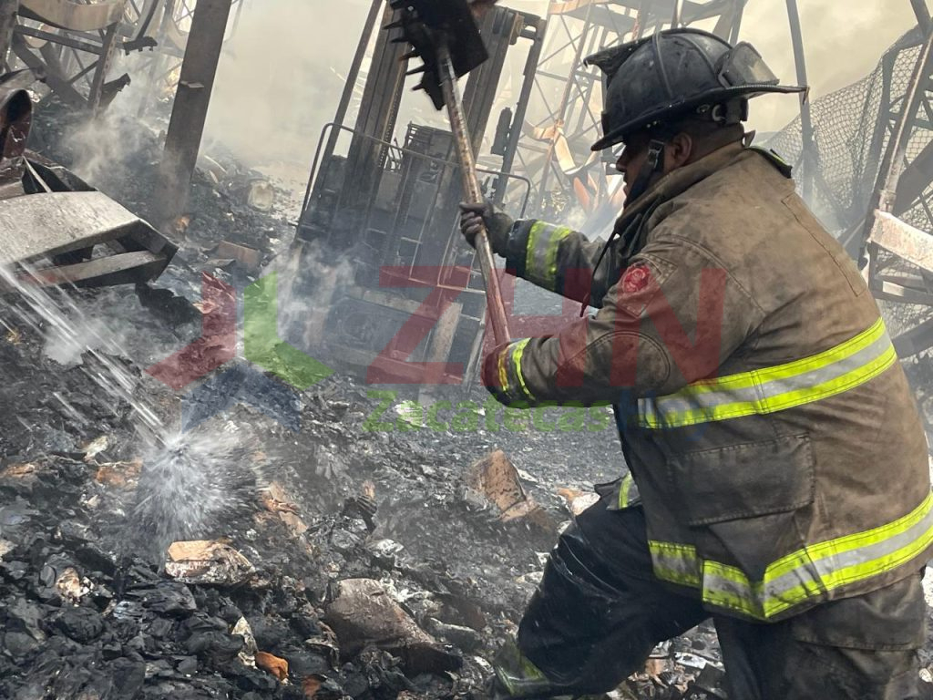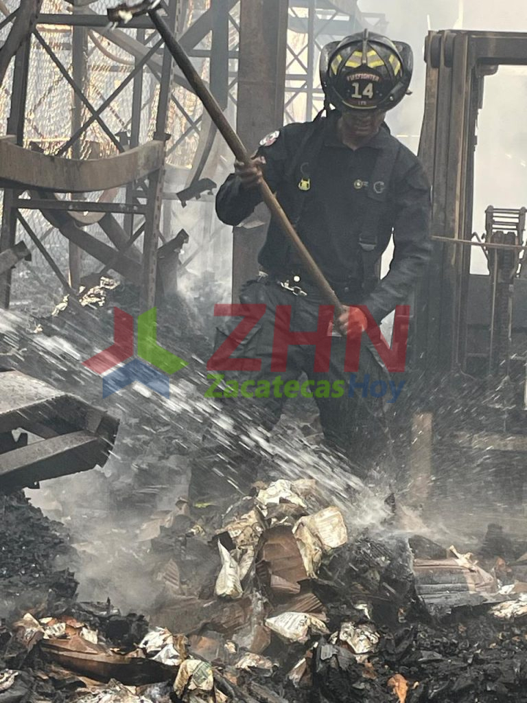 Zacatecas, Zac..- Tras más de 24 horas de intenso trabajo, esta noche se logró sofocar el 98 por ciento del incendio que se registró en las bodegas federales de Alimentación para el Bienestar y que provocó la pérdida total de las mismas.