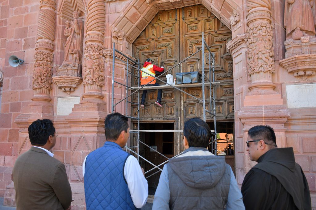 Guadalupe, Zac.- El Alcalde de Guadalupe, Julio César Chávez Padilla, realizó una supervisión de obra correspondiente a la rehabilitación de la puerta del Convento de Guadalupe ubicado en el Jardín Juárez.