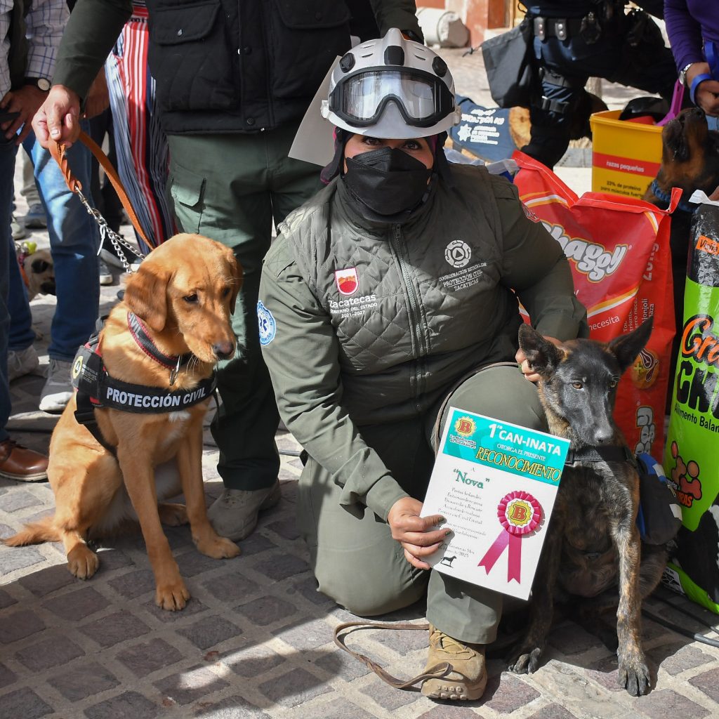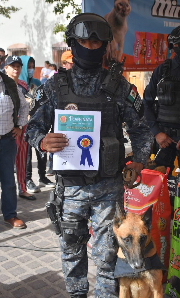 Al término de esta Can-inata, ya en el Jardín Juárez, se realizó la entrega de reconocimientos a perros militares y de Corporaciones Policiacas y de emergencias que prestan diferentes servicios de apoyo a la población.