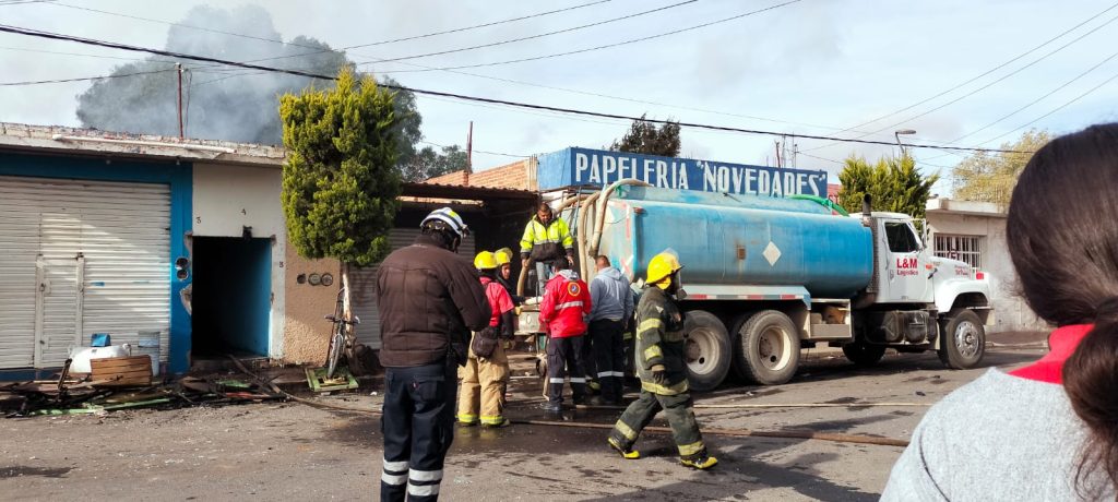 Calera de Víctor Rosales, Zac.- Bomberos, rescatistas y paramédicos de la Coordinación Estatal de Protección Civil, CEPC, en apoyo de las Unidades de Protección Civil de los municipios de Calera y Morelos, atendieron un llamado del Sistema de Emergencias 911 para prestar auxilio en un incendio con explosión en una casa habitación tipo vecindad, que dejó como saldo una persona sin vida y cuatro lesionados en un hecho que ocurrió este miércoles en la calle Centro que se localiza en el municipio de Calera de Víctor Rosales.