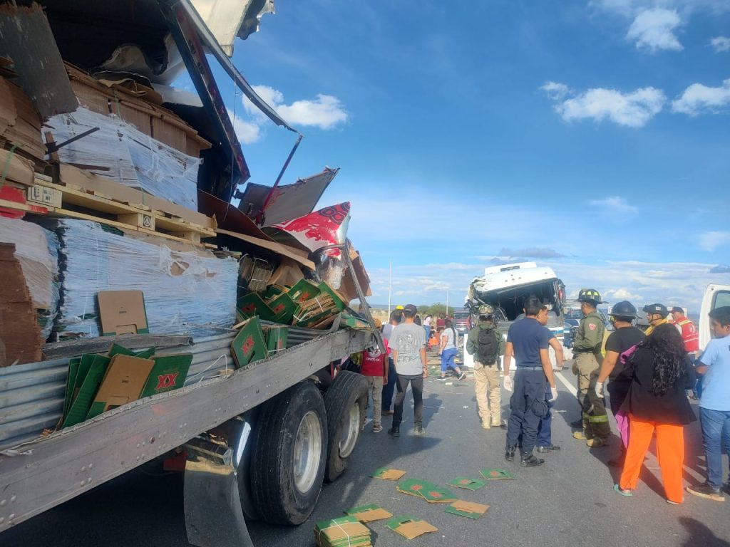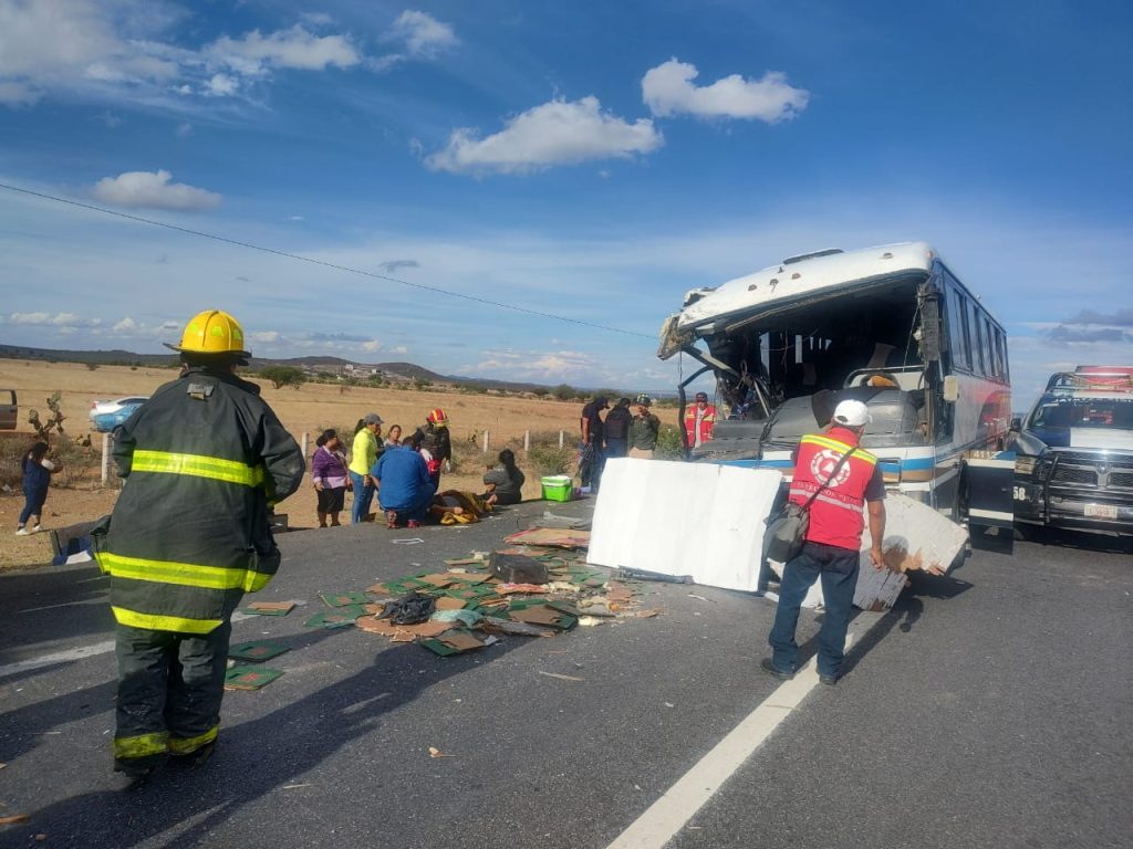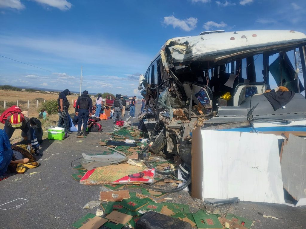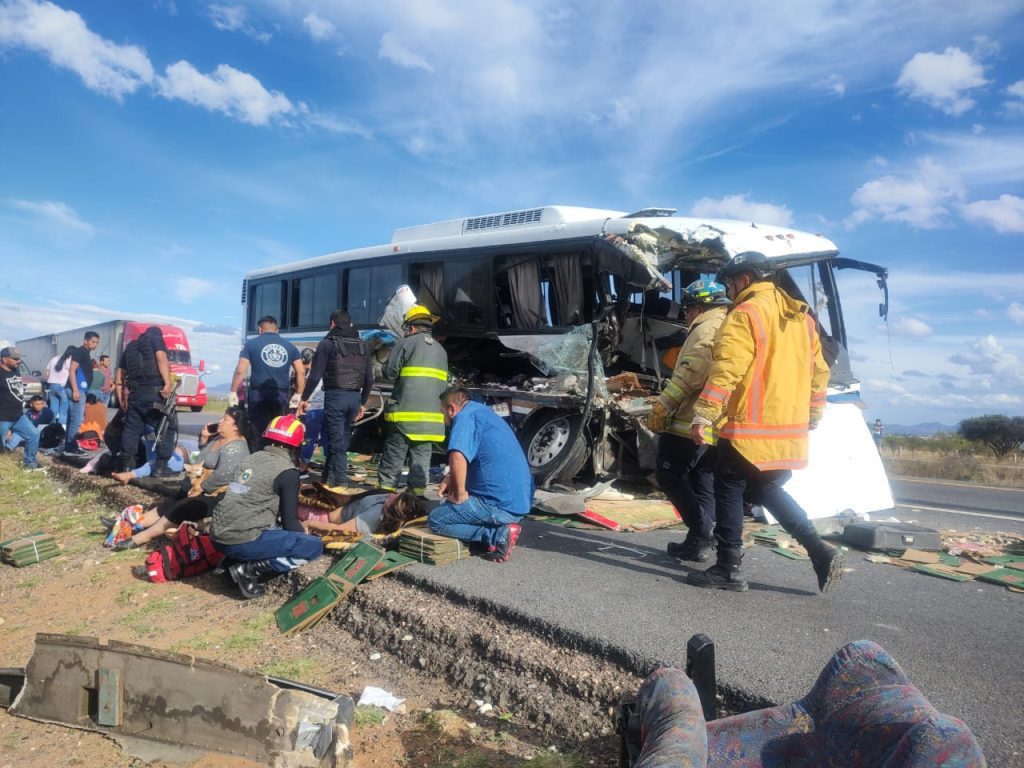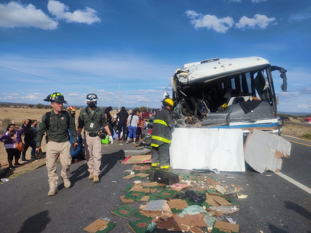 Un muerto y ocho lesionados graves, saldo de accidente carretero entre un autobús y un camión de carga en Pánfilo Natera (Galería)