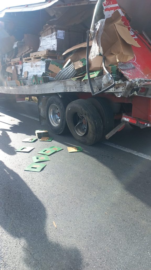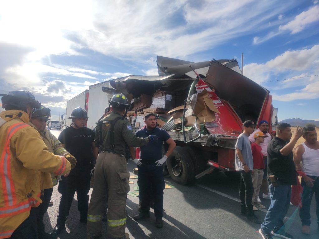 La primera versión señala que el camión de pasajeros se impacto de frente en la parte posterior de un camion tipo Quinta Rueda que transportaba cajas de cartón de una empresa cervecera.