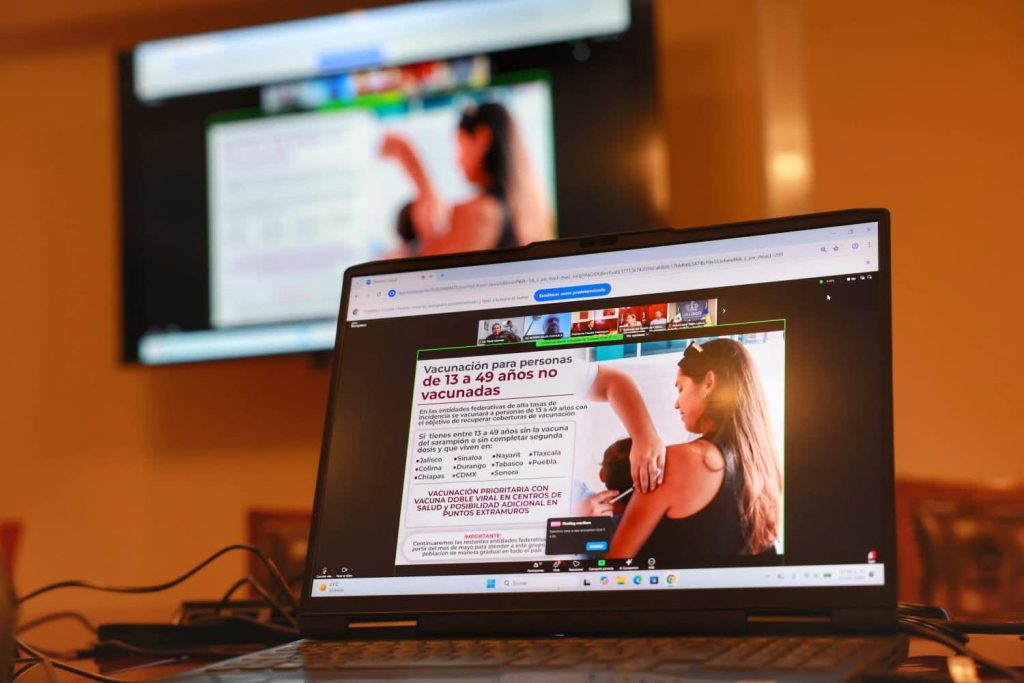 “Esta tarde nos reunimos de manera remota con nuestra presidenta Claudia Sheinbaum Pardo para seguir coordinando acciones para la prevención del sarampión y la estrategia de vacunación”, expresó.