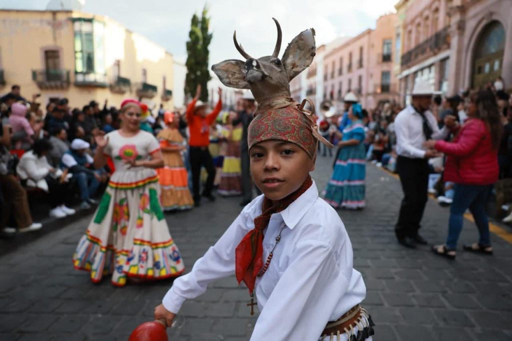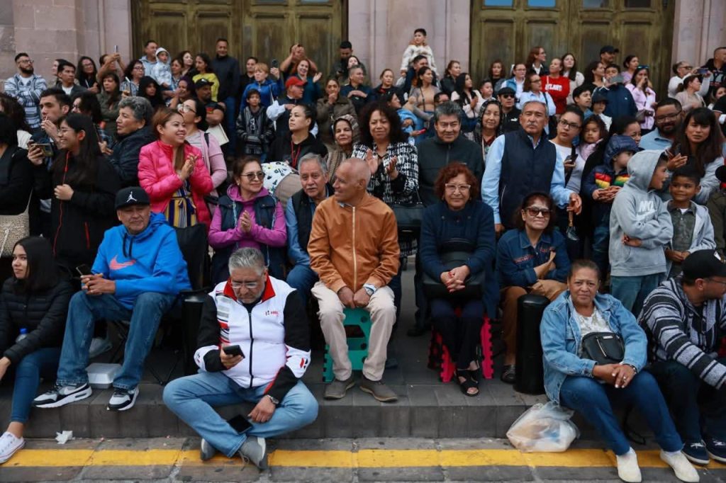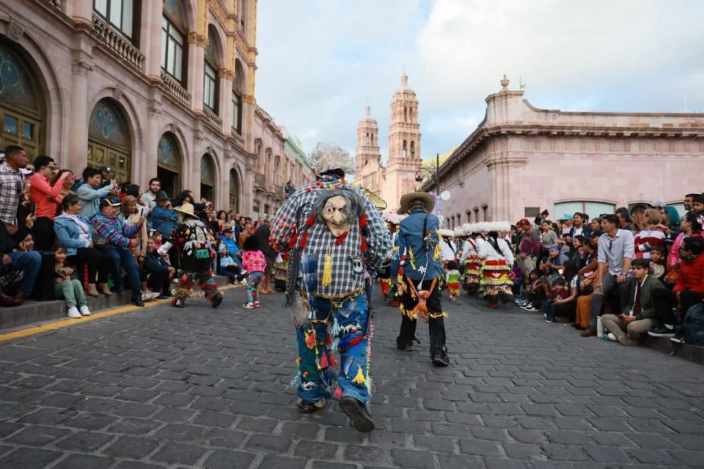 Especial mención merecen las agrupaciones de matlachines, quienes aportaron un sello profundamente tradicional al desfile, con su energía, misticismo y devoción. Los grupos “El Divino Niño Jesús”, de Vetagrande; el Grupo de Danza Folklórica “Cuicoyan”, de Pinos, todas de Zacatecas, conmovieron al público con su simbólica danza ritual.