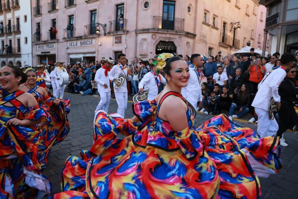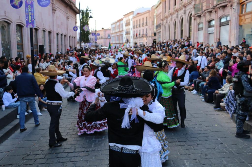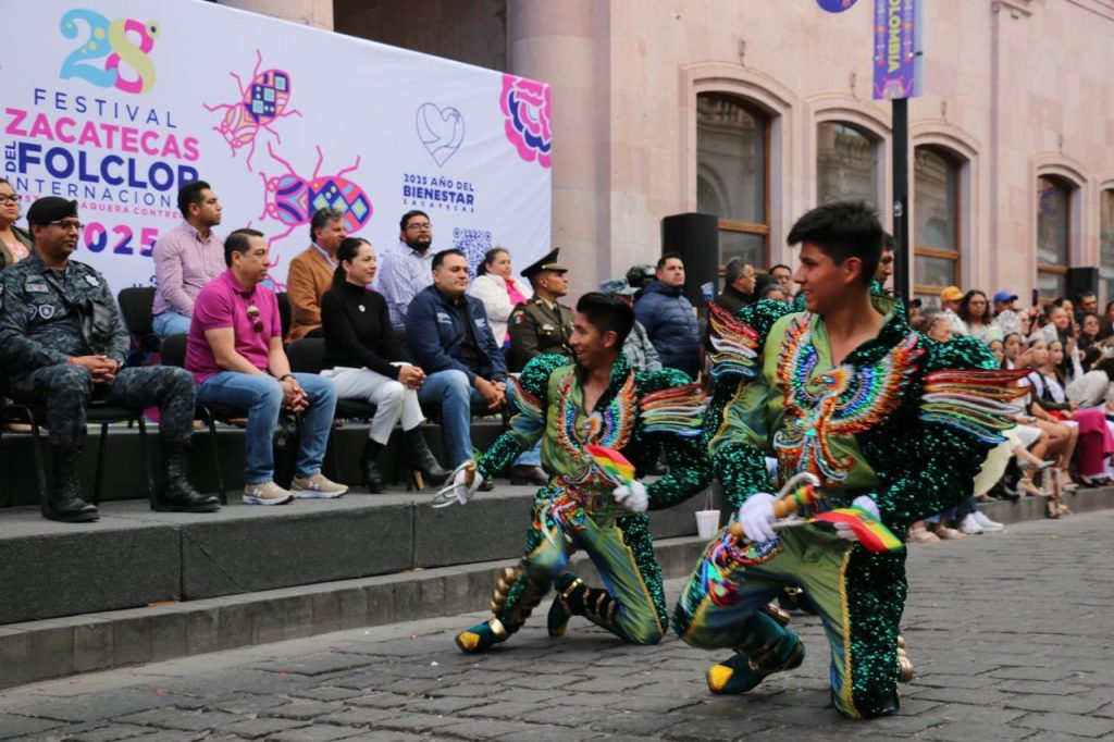 El inicio del Festival cerró con presentaciones especiales en el foro principal de Plaza de Armas, a cargo de las agrupaciones representativas de Zacatecas, Bolivia, Cataluña, Puerto Rico, Sinaloa y Colombia, que invitaron a las y los zacatecanos a celebrar la riqueza dancística del mundo.